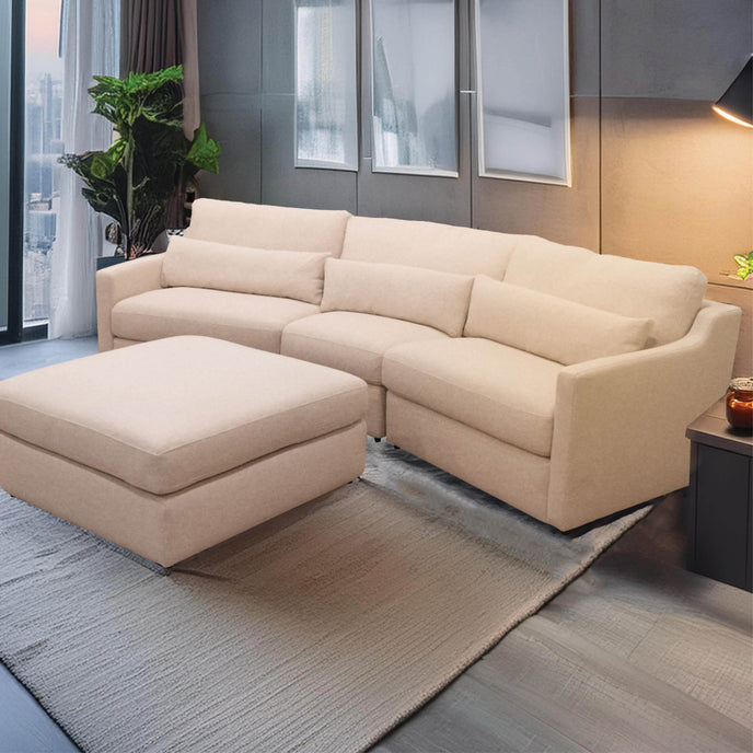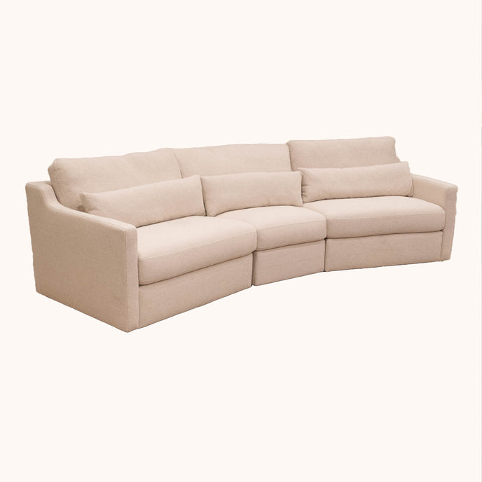 The Luca modular sofa-sectional is as versatile as it is comfortable. Narrow arms, and individual lumbar pillows with each seat, gives this flexible furniture a refined and elegant design. Each piece features kiln-dried hardwood frames, deep seating, and a sinuous spring suspension. Seat cushions are high density foam with pocketed coils covered in natural unbleached linen upholstery.