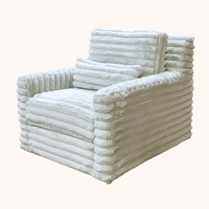 Moby swivel accent chair features a loose back and kidney pillow. Expertly crafted in the USA employing traditional furniture making methods. Hardwood frames are secured with blocks, glue, staples and dowel joints for the strongest frame in the industry. Eight gauge sinous spring suspension system spaced 5" apart provides the most supportive suspension system. Each cushion begins with a high density foam core, wrapped in convoluted foam, then it's wrapped in hollow fiber. Hollow fiber is a very light and fluffy material that is non-collapsible, holding it's consistency for years to come. Lifetime warranties on frames, suspension and cushions from any manufacturing defects.