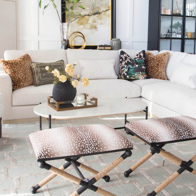 The Raleigh modular corner sectional is an elegant showstopper featuring pocketed coil, down-wrapped high-density foam cushions. The solid kiln-dried hardwood frame and brushed oak base give durability plus next-level design detail. Raleigh comes with lumbar accent pillows and is available in 50/50 polyester/cotton stainproof cream upholstery.Â
